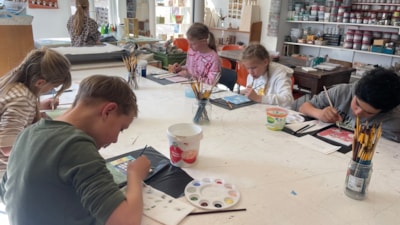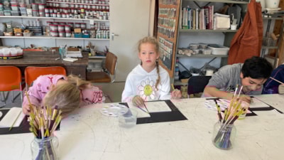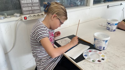 Voor ons thema Kunst mochten we bij Els Kramer, Demi’s oma, een tegeltje komen schilderen met glazuur.